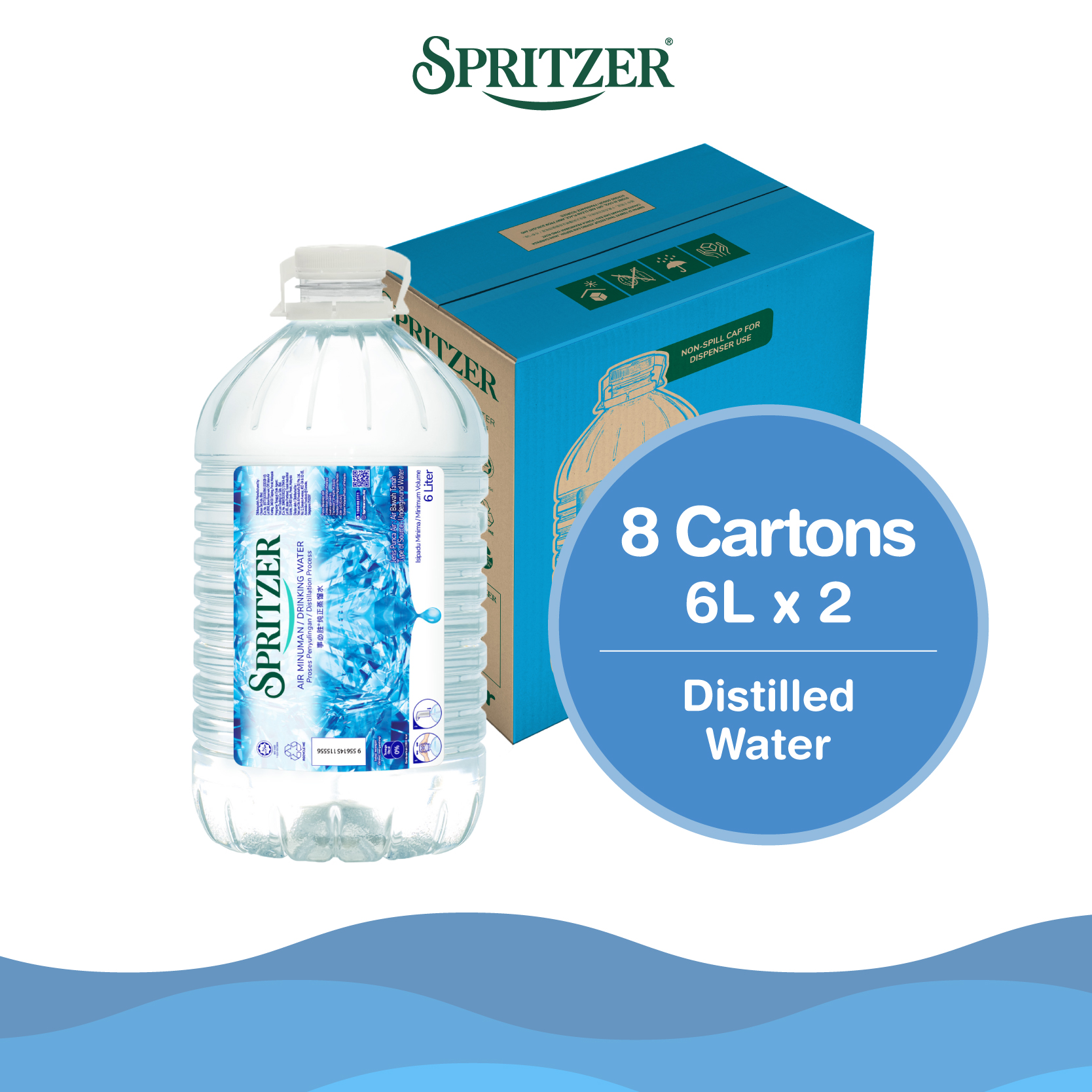 Spritzer Distilled Water - 8 Cartons Bundle (6L X 2)